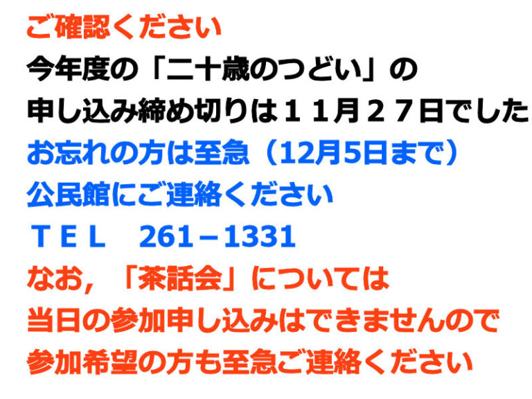 二十歳のつどい 茶話会