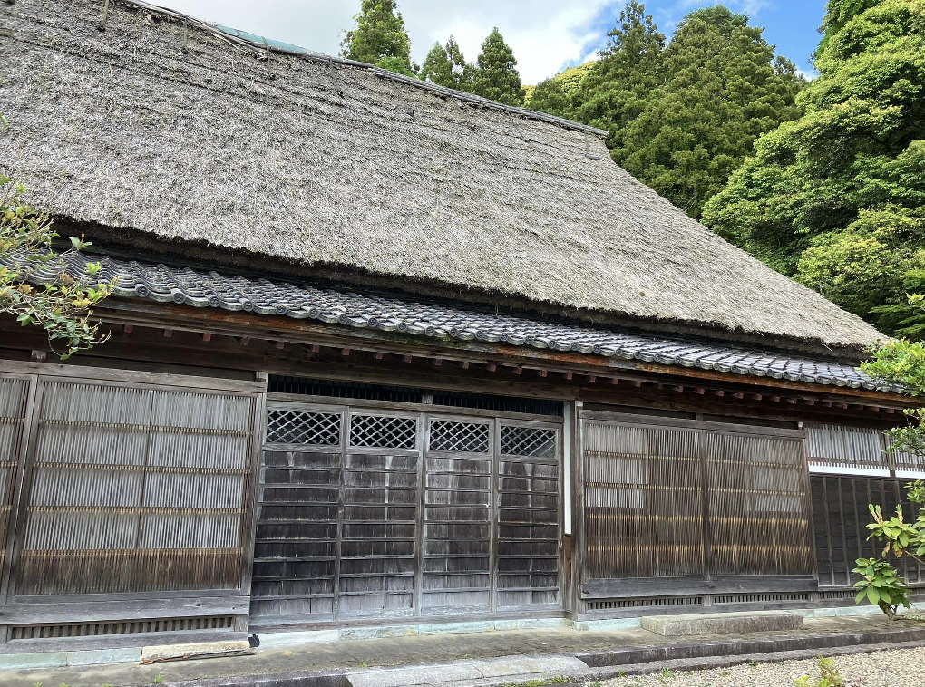 本丸で快い汗をかいた後、石川県指定有形文化財「加賀藩十村役 岡部家」の視察も行いました。岡部家では、ボランティアさんの丁寧な説明もあり、町に寄贈され保存整備されています素晴らしい藩政時代の十村役の茅葺の文化財を見ることができ、13代殿様が止まられた部屋の矢屏風も見て、最後に、塀の瓦に飾っています5対の七福神の説明も受けました。