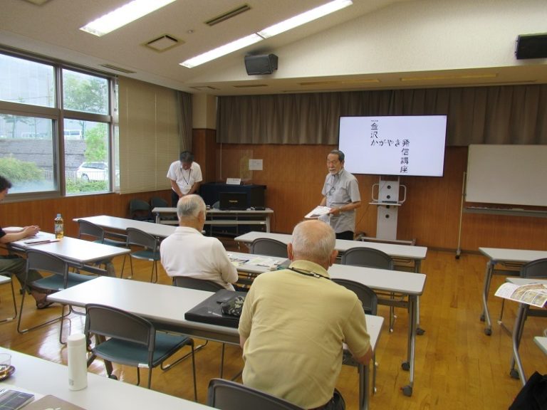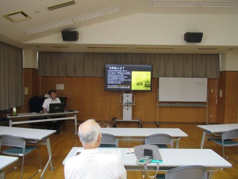 24日(水)の午前開催しましたふるさと歴史研究会は、金沢市埋蔵文化財センター谷口所長の金沢ふれあい講座「日本遺産 北前船の魅力」でした。 先生の講演は、日本遺産とはから始まり、文化財の指定等の違い等の説明もあり、金石・大野・粟崎地域の北前船の日本文化について、スライドを使って丁寧な説明いただきました。日本遺産認定には文化・伝統を語るストーリーが重要で、令和元年の金沢市の認定を含め北前船の遺産は52市町があり、金石・大野・粟崎地域の10件の文化財について、ストリーを含め詳細に説明され、いくつかの質問にも親切に応えていただきました。 講演終了後に、参加者の皆さんにお諮りして、11月27日(水)の歴史研究会は、9時~13時で金石か大野地区の北前船関係文化財を視察研修することを確認させていただきました。なお、8月は休会で、9月25日は、谷内賢正さんの「高天原故地」を聞くことにし、10月23日は、亀田さんから金浦用水の新しい発見等を聞くことにいたしました。