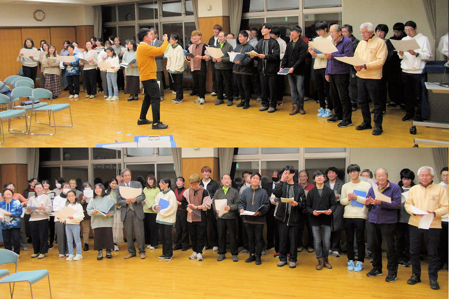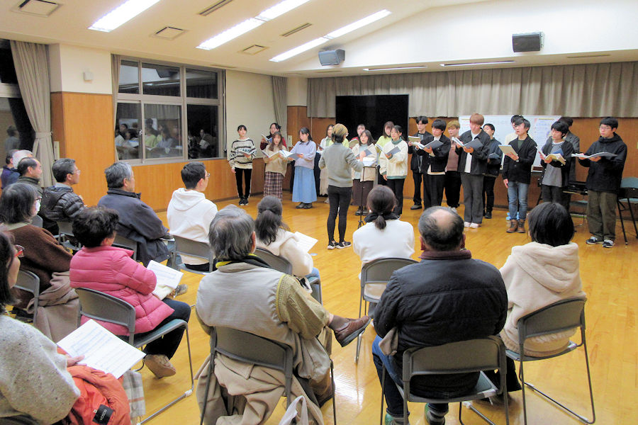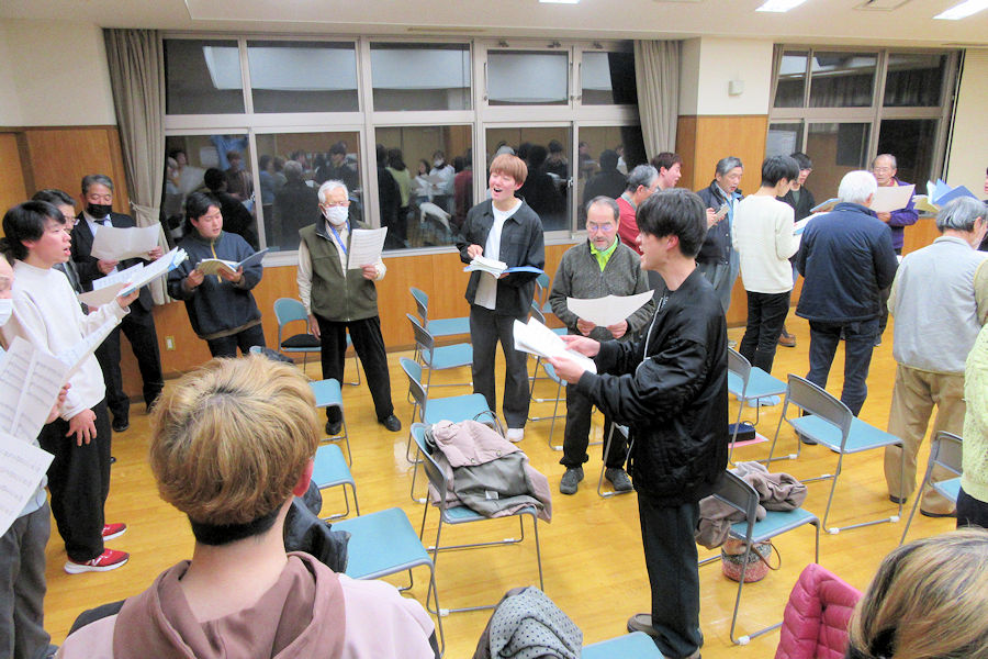 「カラオケは歌うけど,4部合唱は初めて。」「学生の指導の仕方も上手いね。」「さすが合唱団だけあって歌が上手。」などと感想が聞かれました。