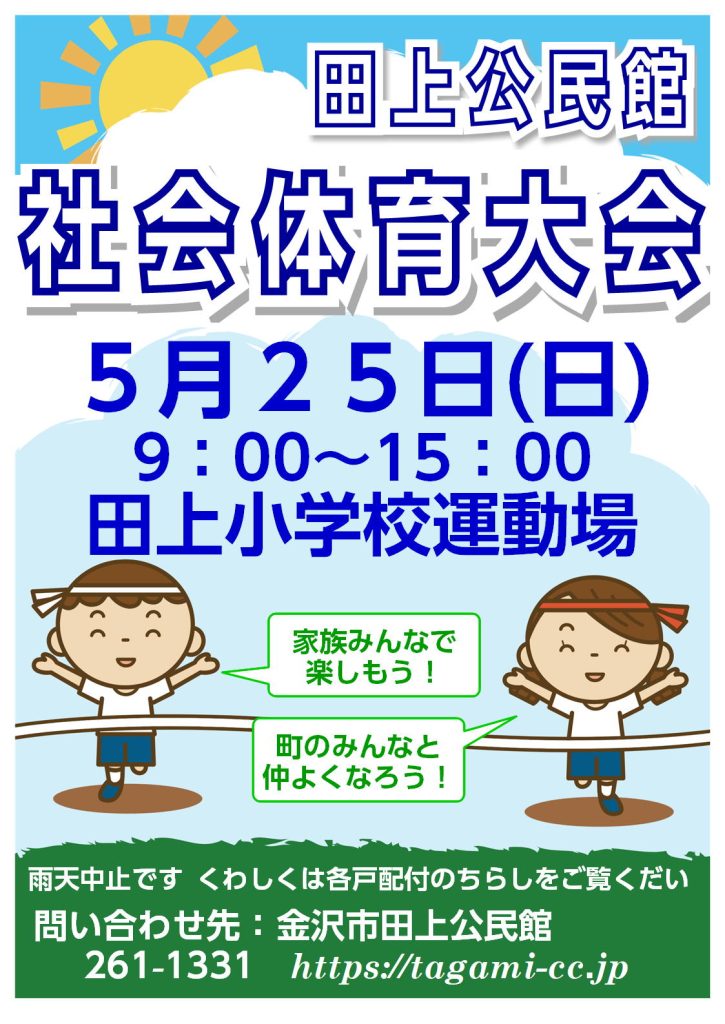 5月25日(日)社会体育大会を開催します。くわしくは各戸配付のプログラムをご覧ください。